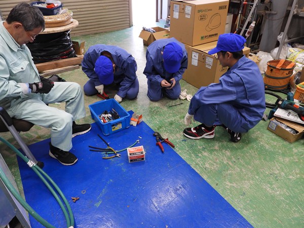 DAY3電線管やケーブルの実習を行い、実際の現場作業に触れる